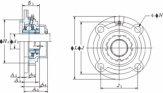 軸受箱 軸受 L H3 J J1 N(±0.2) A1 A2 A3 A4 B1 As Ac 呼び番号 基本定格荷重(kN) 係数f0