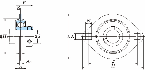 軸受箱 軸受 H L A A1 J(±0.4) N(±0.25) H2 B S 呼び番号 基本定格荷重(kN) 係数f0