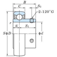 ・SU形軸受はSB形軸受をさらに軽量化した球状外径面の外輪と円筒穴の止めねじ付き広幅内輪を持つ、無給油式のグリース密封形深溝玉軸受です。