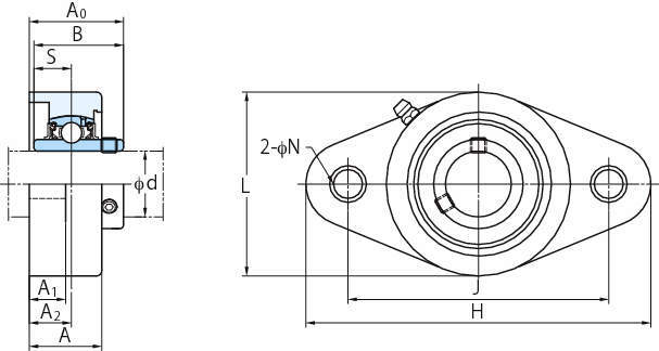 ・UCVFLはプラスチック軸受箱を用いたひし形フランジユニットです。