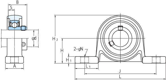 ・UC-S6形軸受は軸受材料にステンレス鋼を用いた耐水性・耐食性に優れた軸受です。