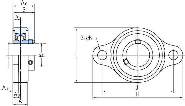 ・USFLはステンレス鋼を用いた軽量形軸受とステンレス製軸受箱の小形・軽量のひし形ユニットです。