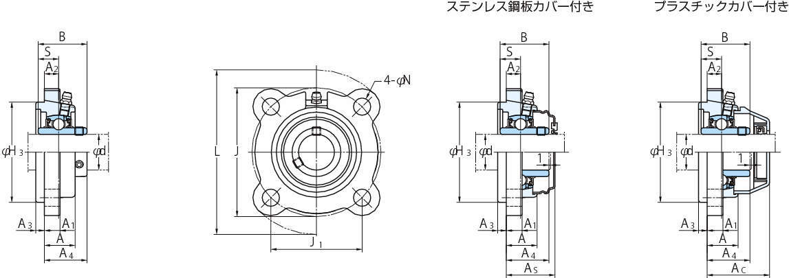 ・UC-S6形軸受は軸受材料にステンレス鋼を用いた耐水性・耐食性に優れた軸受です。