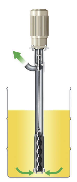 ・ドラム缶などの深い容器に入った液体でも、強力に引き抜き移送