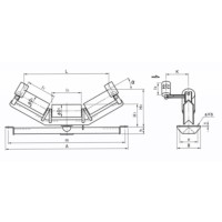 ・アイドラ全体は、センタピンを中心に一定の角度で旋回できる構造になっており、ガイドローラはアイドラの配列に対して“離れた”位置にあります。そのためベルトが片寄る(蛇行)することで、ガイドローラにベルトが接触し、その力によって旋回フレームが旋回します。その時に生じたローラとの抵抗の分力でベルトをコンベヤの中心に復帰させようとします。