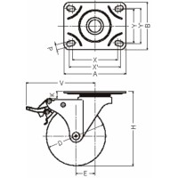 ・取付座・取付寸法が各サイズ旋回式・固定式ともに共通で、堅牢さと安定感のあるキャスターです。