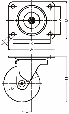 | 440G-R125 | 旋回 | 125 | 50 | ゴム車輪 一体型 樹脂ブッシュ | 120 | 159 | 165×140 | 133×85 | 10.5 | 37 | 101 | 445G-R |