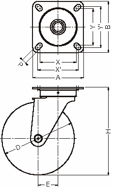 ・幅広車輪のため安定性がよく走行性に優れ、旋回もスムーズなキャスターです。(車輪径75mm)