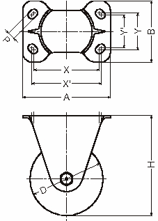 | 520SR-RB125 | 固定 | 125 | 44 | ゴム車輪 スチールホイール ローラーベアリング | 240 | 171 | 150×105 | 112×63 | 119×56 | 13 | 525S-RB |