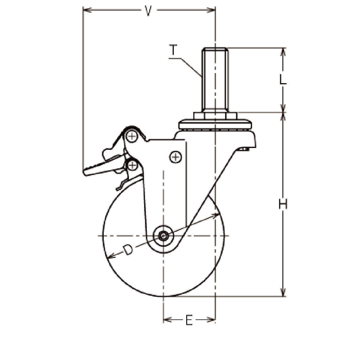 ・ロックをかけてキャスター本体を回して強く締め付けますとロック作動部が破損する事があります。