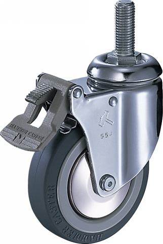 ・旋回部のボールレース径が大きく、幅広車輪の採用で旋回性能、走行安定性が抜群のねじ込みキャスターです。
