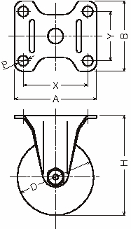 320SRP-RU125 固定 125 38 ゴム車輪 ナイロンホイール 樹脂ブッシュ 150 168 102×102 75×75 80×80 11 434S0S-RU