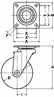 420BBS-FR125 旋回 125 38 ゴム車輪 ナイロンホイール ラジアルボールベアリング 130 168 102×102 75×75 80×80 11 38 102 434S-FR