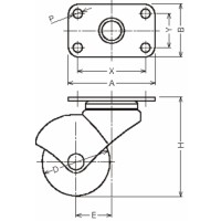 | 405P-N40 | 旋回 | 40 | ナイロン車輪 一体型 | 25 | 58 | 51×31 | 40×20 | 5.5 | 21 | 46 | 409-N |