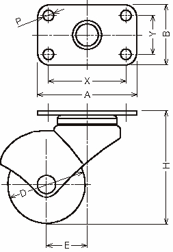| 405P-N40 | 旋回 | 40 | ナイロン車輪 一体型 | 25 | 58 | 51×31 | 40×20 | 5.5 | 21 | 46 | 409-N |