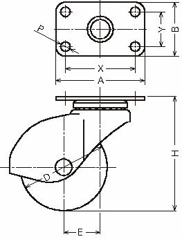 | 451P-R50 | 旋回 | 50 | 20 | ゴム車輪 一体型 樹脂ブッシュ | 30 | 65 | 51×31 | 40×20 | 5.5 | 21 | 53 | 425E-R |