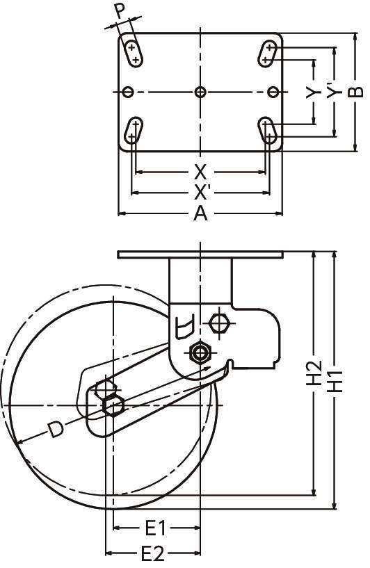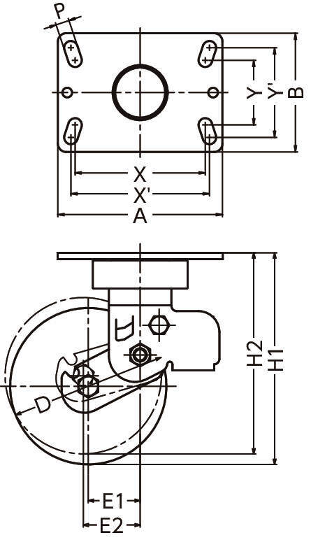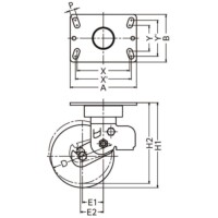 | 960BPS-CU200 | 旋回 | 200 | 50 | ウレタン車輪(熱硬化性) イモノホイール ラジアルボールベアリング | 125 | 250~235 | 158×114 | 125×62 | 133×86 | 13 | 84~92 | 194 | 962BPS-CU |