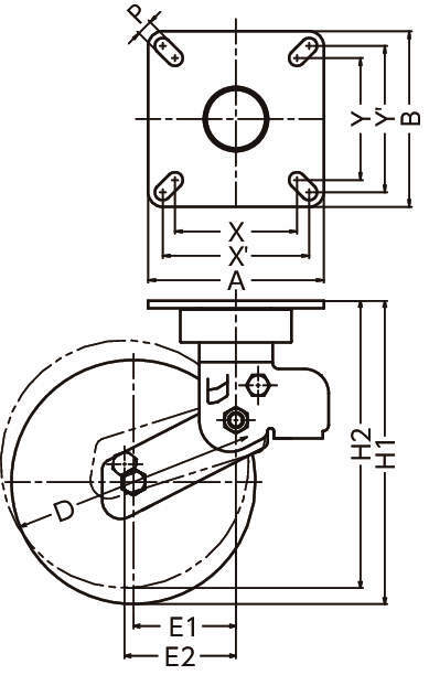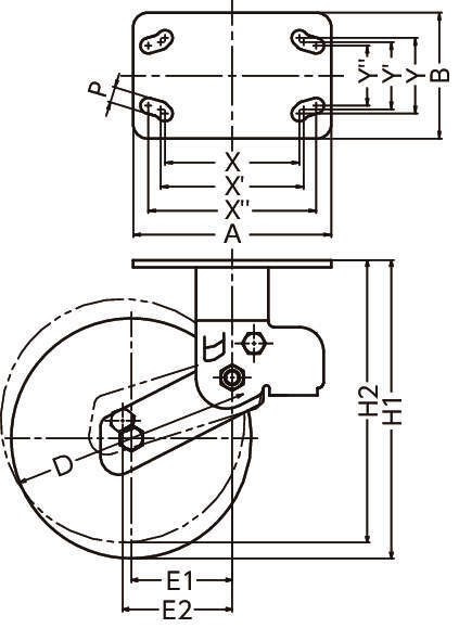 | 960HPS-CU200 | 旋回 | 200 | 50 | ウレタン車輪(熱硬化性) イモノホイール ラジアルボールベアリング | 125 | 250~235 | 144×144 | 100×100 | 120×120 | - | 13 | 84~92 | 194 | 962BPS-CU |