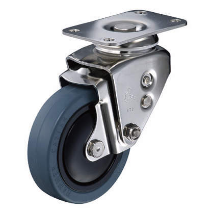 ・凹凸路面での振動や衝撃を吸収することができ、耐水性・耐蝕性に優れたオールステンレスクッションキャスターです。