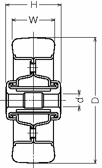 | 425S-WR100 | 車輪のみ | 100 | 34 | 44 | 10.2 | ゴム車輪(ワイドタイプ) スチールホイール 樹脂ブッシュ | 425S-WR |
