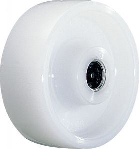 ・イモノ車輪等の代替品として採用されたものでゴムやイモノ車輪よりは歴史の新しい材質です。