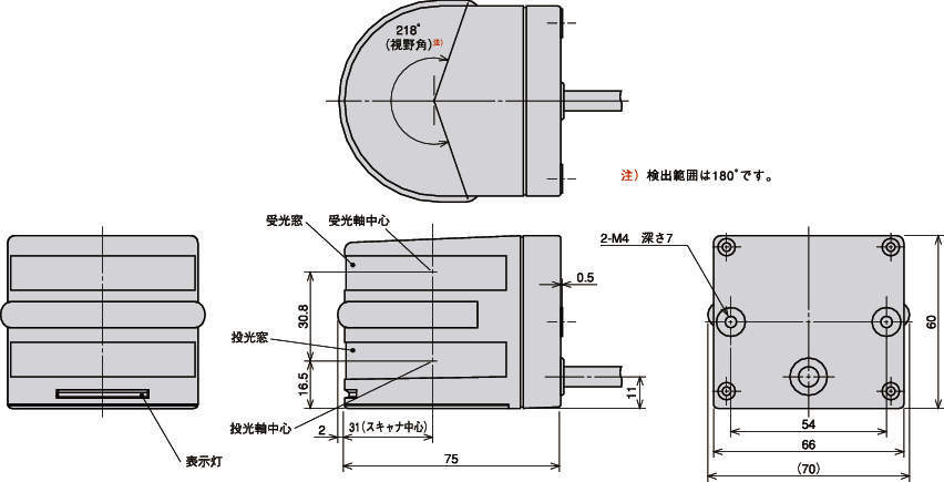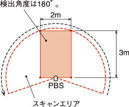 | 検出範囲 | 0.2~3×2m(原点はスキャン中心位置)。但しスキャン角度180°以内 |