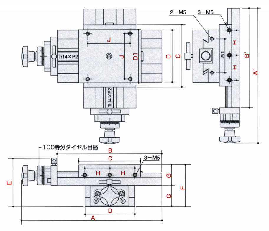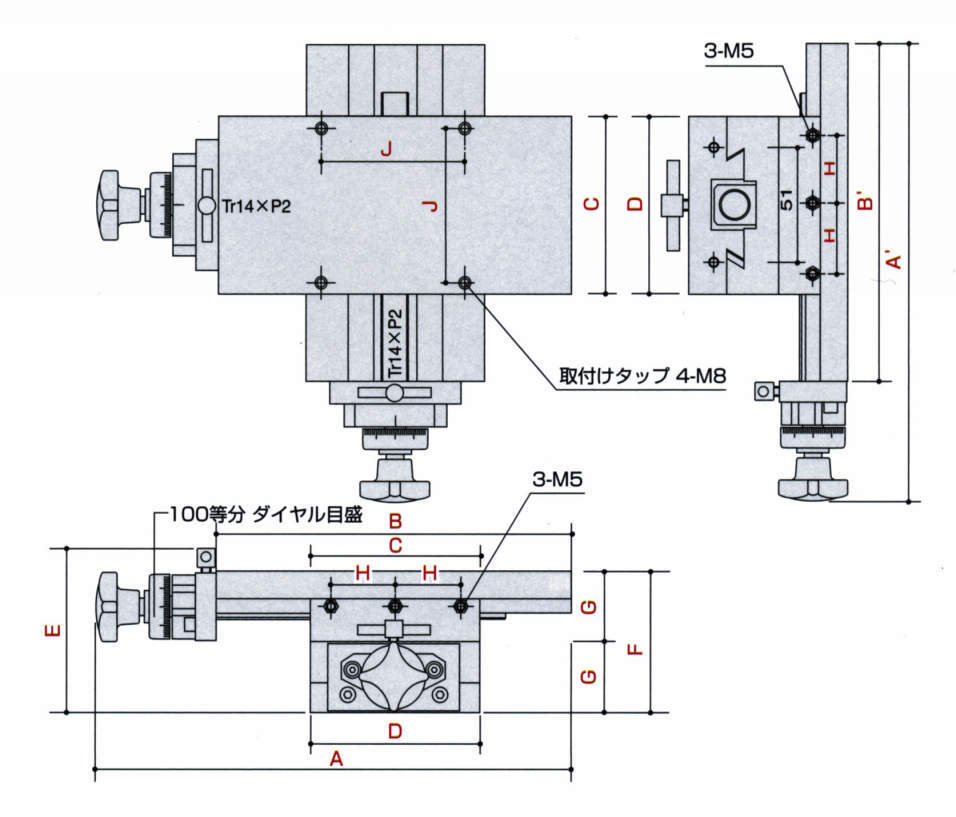また、3台組み合わせる場合は、Z軸冶具を使用することで、X.Y.Z軸スライドテーブルができます。