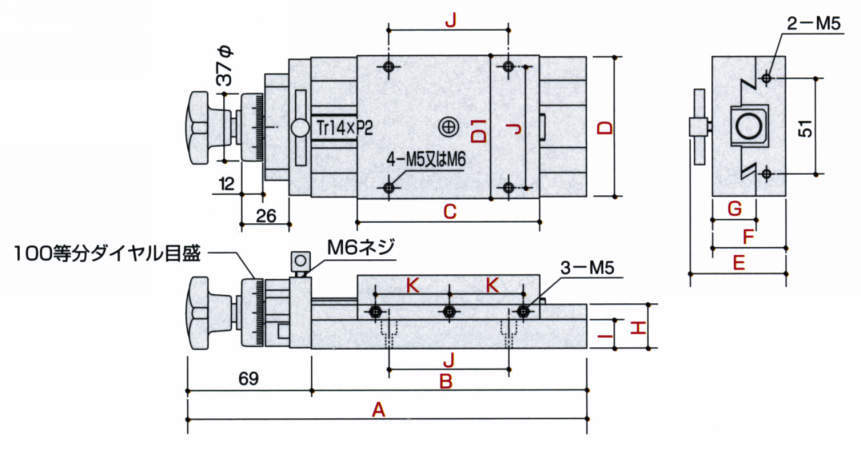 ・組み込みユニットとして最適のT溝付スライドテーブルも用意。詳細はお問い合わせください。