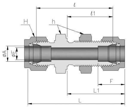・ナットを指締め位置からスパナで締め付けることにより、まずフロントフェルールが本体のテーパ面に沿って変形し、面接触してシール機構を完了後、バックフェルールがフロントフェルール後端のテーパー面に沿って変形し、チューブ表面に強く圧し付けられ1・1/4回転(サイズ1/4OD及び6mm以上)締め付けて完了します。