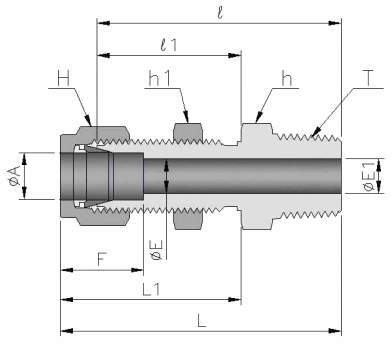 ・ナットを指締め位置からスパナで締め付けることにより、まずフロントフェルールが本体のテーパ面に沿って変形し、面接触してシール機構を完了後、バックフェルールがフロントフェルール後端のテーパー面に沿って変形し、チューブ表面に強く圧し付けられ1・1/4回転(サイズ1/4OD及び6mm以上)締め付けて完了します。