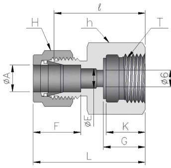 ・ナットを指締め位置からスパナで締め付けることにより、まずフロントフェルールが本体のテーパ面に沿って変形し、面接触してシール機構を完了後、バックフェルールがフロントフェルール後端のテーパー面に沿って変形し、チューブ表面に強く圧し付けられ1・1/4回転(サイズ1/4OD及び6mm以上)締め付けて完了します。