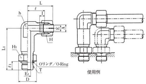 ・ねじ切り、溶接を必要としないため管を薄肉にでき(くい込み継手の機構および管の剛性から管肉厚は、その外径寸法の10%以上、外径φ10mm以下の場合には最小1mm必要です)、曲げ加工も容易となるため継手使用総数も少なくなり、機器の軽量化・コンパクト化がはかれます。
