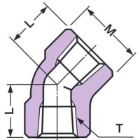 | SLB06-000F | 高圧管継手(ねじ込み形管継手) | SLB | 45°エルボ | Rc3/4 | 39 | 26.7 | 0.31 |