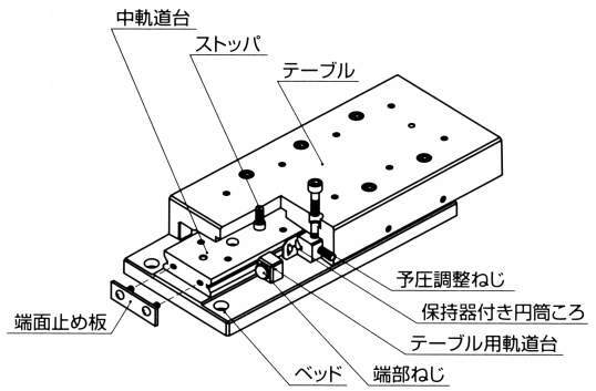 ・テーブルにはめねじ、ベッドにはざぐりが施されており、適正な予圧状態にしてありますので、そのまま機械・装置に取り付けるだけで信頼性の高い直線運動が得られます。