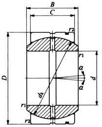 ・給油式球面滑り軸受は、内外輪とも高炭素クロム軸受鋼が使用され、滑り面はりん酸塩皮膜処理されたうえ、二硫化モリブデン(MoS2)の乾燥皮膜でおおわれているので、低トルクで作動し、耐摩耗性に優れた負荷容量の大きな軸受です。