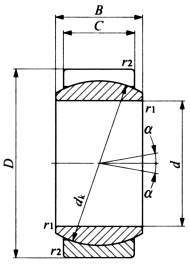 ・給油式球面滑り軸受は、内外輪とも高炭素クロム軸受鋼が使用され、滑り面はりん酸塩皮膜処理されたうえ、二硫化モリブデン(MoS2)の乾燥皮膜でおおわれているので、低トルクで作動し、耐摩耗性に優れた負荷容量の大きな軸受です。