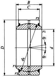 ・給油式球面滑り軸受は、内外輪とも高炭素クロム軸受鋼が使用され、滑り面はりん酸塩皮膜処理されたうえ、二硫化モリブデン(MoS2)の乾燥皮膜でおおわれているので、低トルクで作動し、耐摩耗性に優れた負荷容量の大きな軸受です。