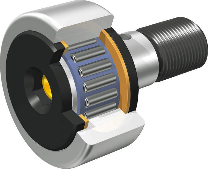 ・カムフォロアは、厚肉の外輪に針状ころを組み込んだ構造で、外輪回転用に設計された、摩擦係数が小さく回転性能に優れた軸受です。