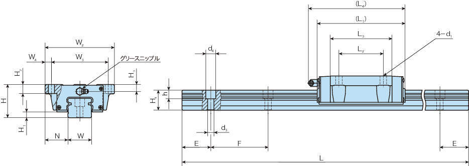 ・CルーブリニアウェイH・MHは、フランジ形・上方向取付け形状のスライドユニットです。