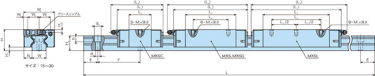 MXSC15C1HS1 ショート 炭素鋼 15 24 4 9.5 - 34 13 4 52 - 24 55 - M4×5.5 3.5 15 16.5 4.5 8 6 30 60 7730 12000 113 50.6 50.6