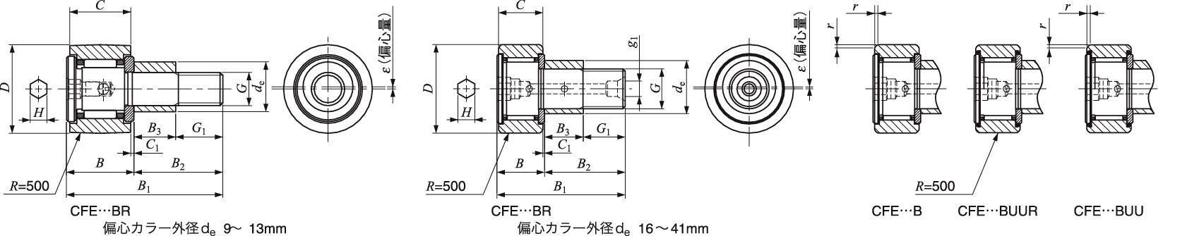偏心カラー付きカムフォロア CFE-B(保持器付き)