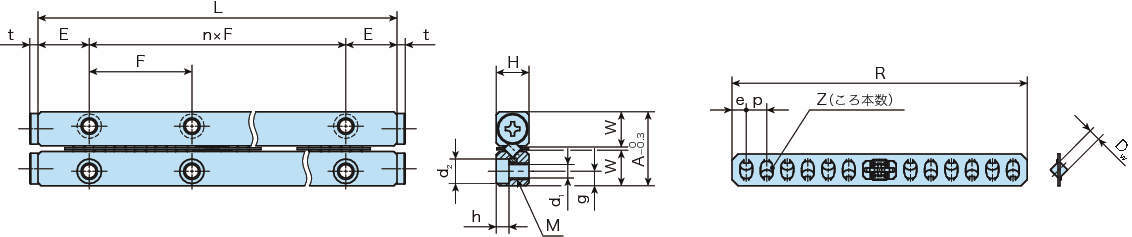 ・この軸受は通常並列で使用するため価格は軌道台4本・保持器付円筒コロ2本を1組とした価格です。
