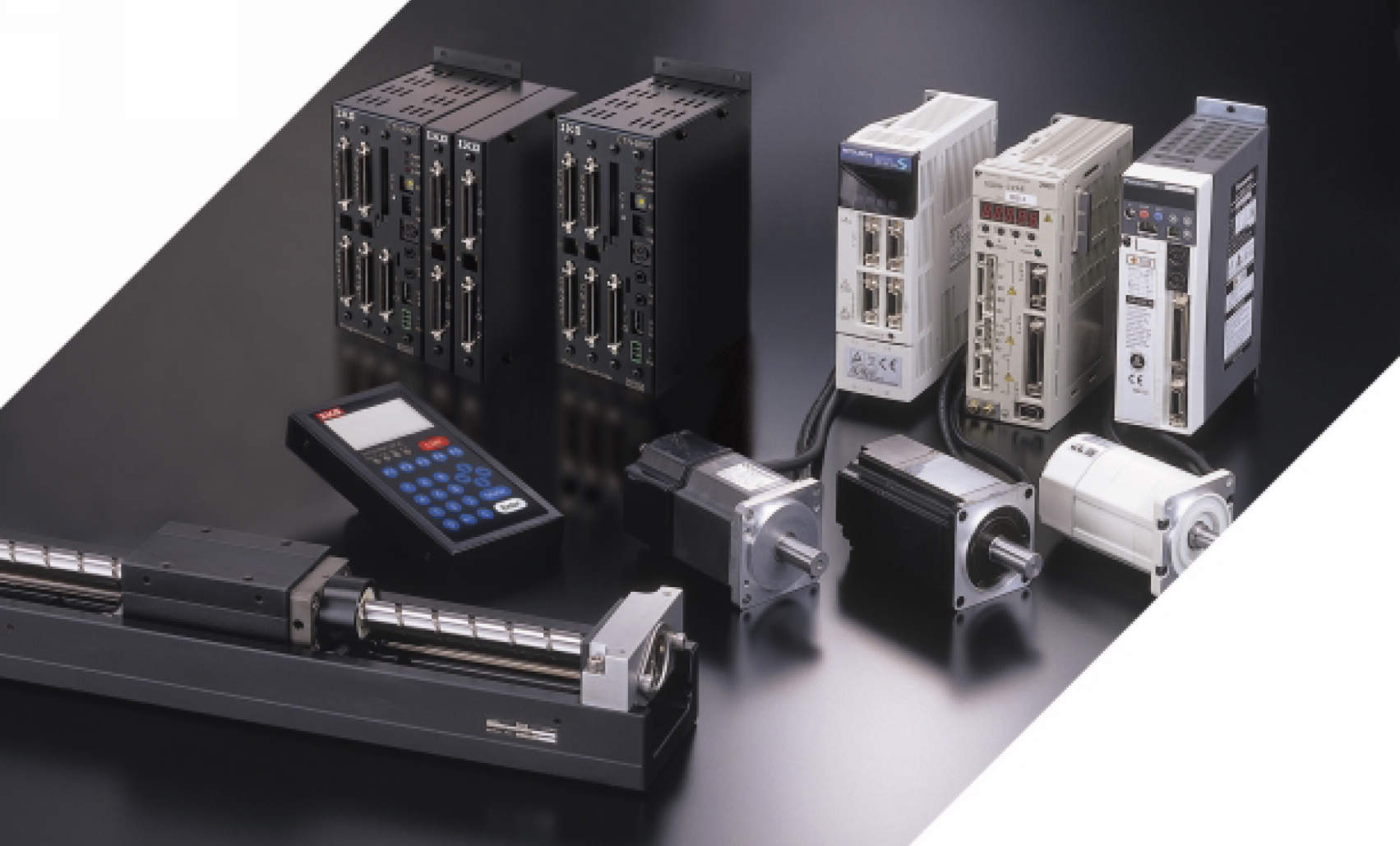 ・精密位置決めテーブルには、ACサーボモータ用に各モータメーカ純正の電装システムをラインナップしています。各種コントローラ、シーケンサなどの周辺機器との接続が簡単に行え、制御システムの設計自由度が飛躍的に向上しました。