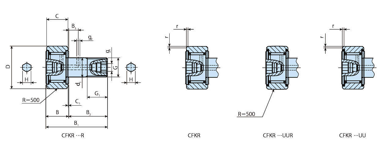 | 外輪外径面の形状 | CFKR-R・CFKR-UUR:球面外輪 CFKR・CFKR-UU:円筒外輪 |