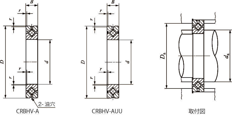 ・複列のアンギュラボールベアリングと比べ、断面寸法はコンパクトでありながら剛性は3~4倍向上します。