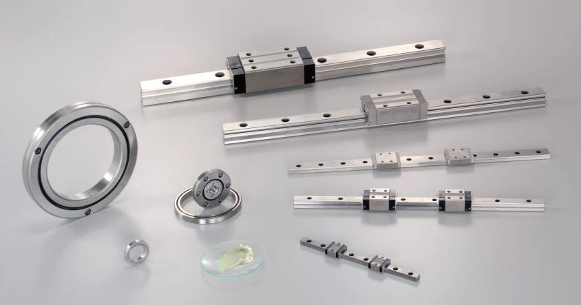 ・グリースでも油でもない新開発の高機能な液晶潤滑剤を封入した直動案内機器、軸受製品。