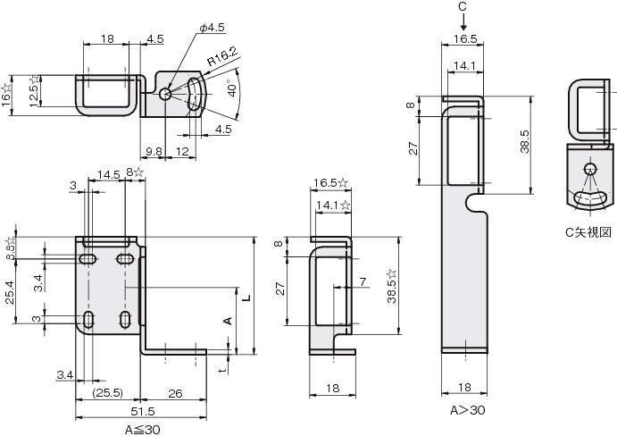 | 付属品 | SUS304:セムスビス(SUSXM7)M3×12 2本 SPCC:セムスビス(黒色クロメート:三価)M3×12 2本 |