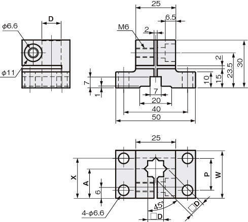 | FSFMBS030-08A | 丸シャフト用 | φ8 | 18.5 | 30 | 20 | 25 | 70 |