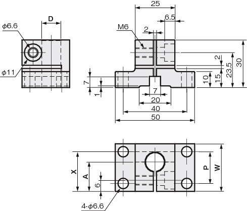 | FSFMBS030-08A | 丸シャフト用 | φ8 | 18.5 | 30 | 20 | 25 | 70 |