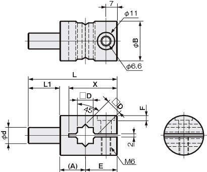 | FSFMJH010-10A | 丸シャフト用 | φ10 | 53 | 20 | 10 | 20 | 27 | 17 | 2 | 16 | 32 |